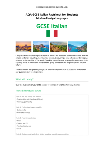 Aqa New Italian Gcse Specification 8633 Student Factsheet Teaching Resources